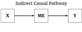 We can calculate the unconditional direct causal effects of X on Y by removing the unconditional indirect causal effect between X and Y. This can be achieved by adjusting the regression model of Y on X for the variation in ME. To briefly explain why this works, let’s make some logic statements about the data: