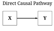 As introduced above, four unique causal pathways can theoretically exist between two constructs, the direction and magnitude of which contributes to the direction and magnitude of the total causal pathway. Let’s start with the easiest, the direct causal pathway. For a direct causal pathway to exist no other mechanism can mediate the relationship between the input – or independent variable – and the outcome – or the dependent variable. For example, the golf head speed and location of a swing for Brooks Koepka – team Koepka all the way! – is a direct cause of the distance a golf ball traveled. Importantly, while this example is immediate in time, a direct causal pathway does not have any time requirements, only the requirement that no mechanism mediates the association. Direct causal pathways not immediate in time, however, are uncommon within the social sciences.