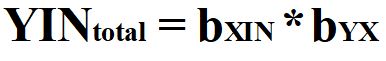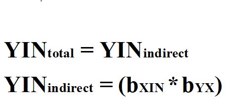 Through reverse estimation, we can solve Equation 4 to identify the causal effects of X on Y (bYX). The reverse estimation can be done by: (1) regressing Y on IN to observe the slope coefficient representative of the total effects of IN on Y and (2) regressing X on IN to observe the slope coefficient representative of the direct effects of IN on X. After estimating these regression models, we can solve for bYX by setting bYX equal to bYIN divided by bXIN.