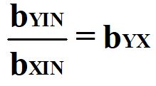 Now that we have translated the equation for Y and IN, we can observe how the requirements of an instrument can permit the observation of the causal effects of X on Y. First, as identified above, the instrument can not have a direct influence on Y. By satisfying this requirement, we can remove the direct effects portion of the equation because bYIN is assumed to be equal to 0.