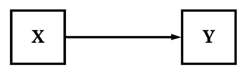 Let me start off by stating this, when we estimate a bivariate regression model we are intrinsically stating that we believe that variation in X (or the identified independent variable) causes variation in Y (or the identified dependent variable). Here, I am using cause to mean either a direct or indirect cause. This intrinsic statement exists for a variety of reasons, the primary being that your bivariate regression model is a directed equation from X to Y. That is, Equation 1 is equal to Figure 4.