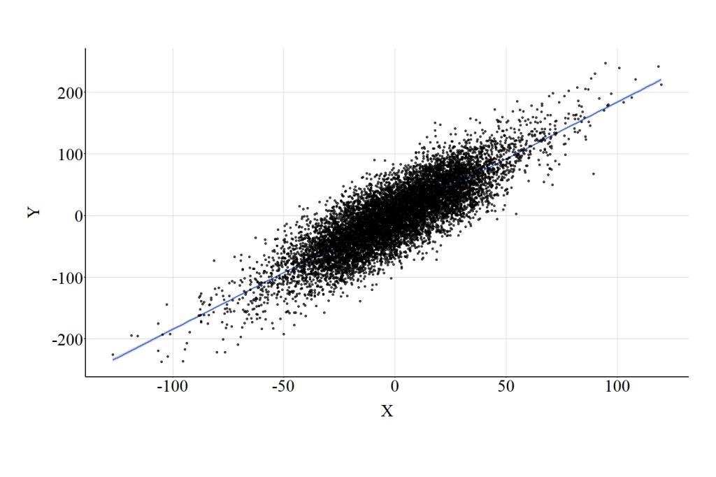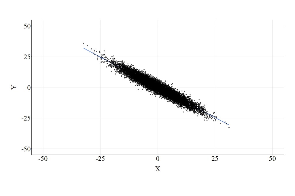 To begin our simulation, we first must specify the confounder (“Con” in the R-code). 10,000 scores for Con were drawn from a normal distribution with a mean of 0 and a standard deviation of 10. After simulating a vector of scores to represent the confounder, scores on X were specified to be causally influenced by scores on Con plus a random value drawn from a normal distribution with a mean of 0 and a standard deviation of 10. Concerning the dependent variable, scores on Y were specified to be causally influenced by scores on X and scores on Con plus a random value drawn from a normal distribution with a mean of 0 and a standard deviation of 30. Using the specification below, a 1-point increase in X was specified to cause a 1-point increase in Y, while a 1-point increase in Con was specified to cause a 4-point increase in Y. A 1-point increase in Con was also specified to cause a 4-point increase in X.