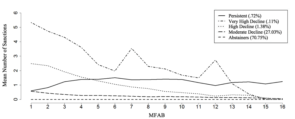 Using latent class growth analysis (LCGA), the study identified five distinct sanctioning clusters (Figure 1):